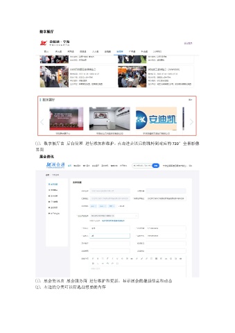 数字展厅 1 .数字展厅由 后台管理 进行添加和维护,点击进去以后将跳转到对应的 720°全景影像 界面 展会资讯 1 .展会资讯由 展会服务商 进行维护和更新,显示展会的最新信息和动态 2 .右边的分类可以筛选出想要的内容